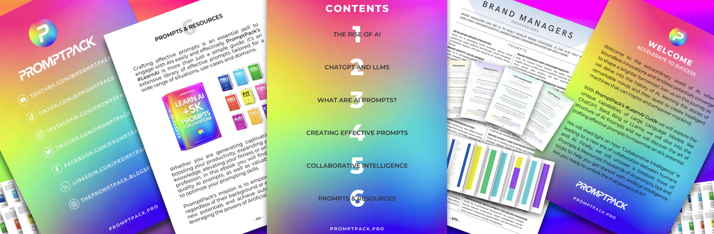 PromptPack's mission is to democratize AI-driven results. This guide is dedicated to providing professional, family-friendly AI resources by offering thousands of quality prompts for a multitude of jobs, sports, industries, needs, use-cases and domains. Whether you're a pro seeking to enhance your productivity or an enthusiast exploring AI, PromptPack will inspire and supercharge AI-driven experiences for everyone!